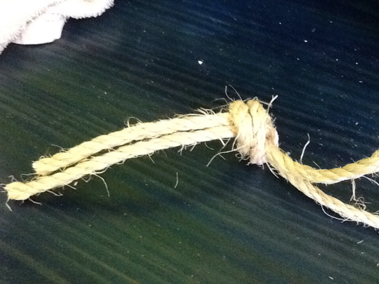3. Cut a piece of rope about 2 feet long, and tie a knot in